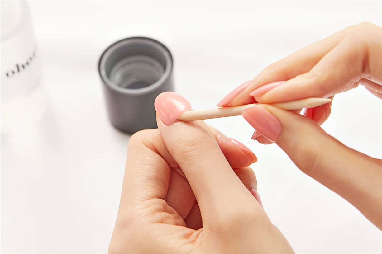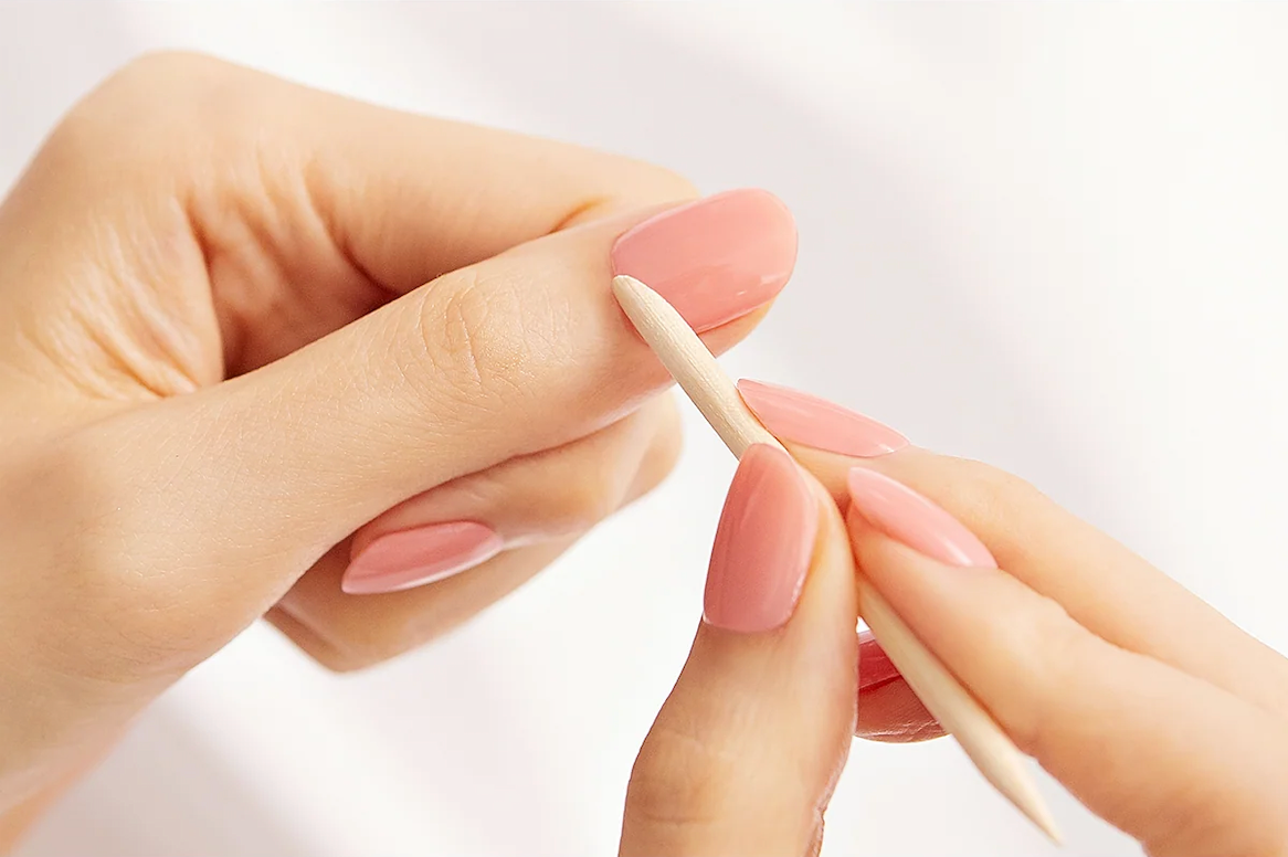 Push stick gently against the edge of your nail strip. Nudge strip in the direction of your cuticle to minimise damage to your nail.