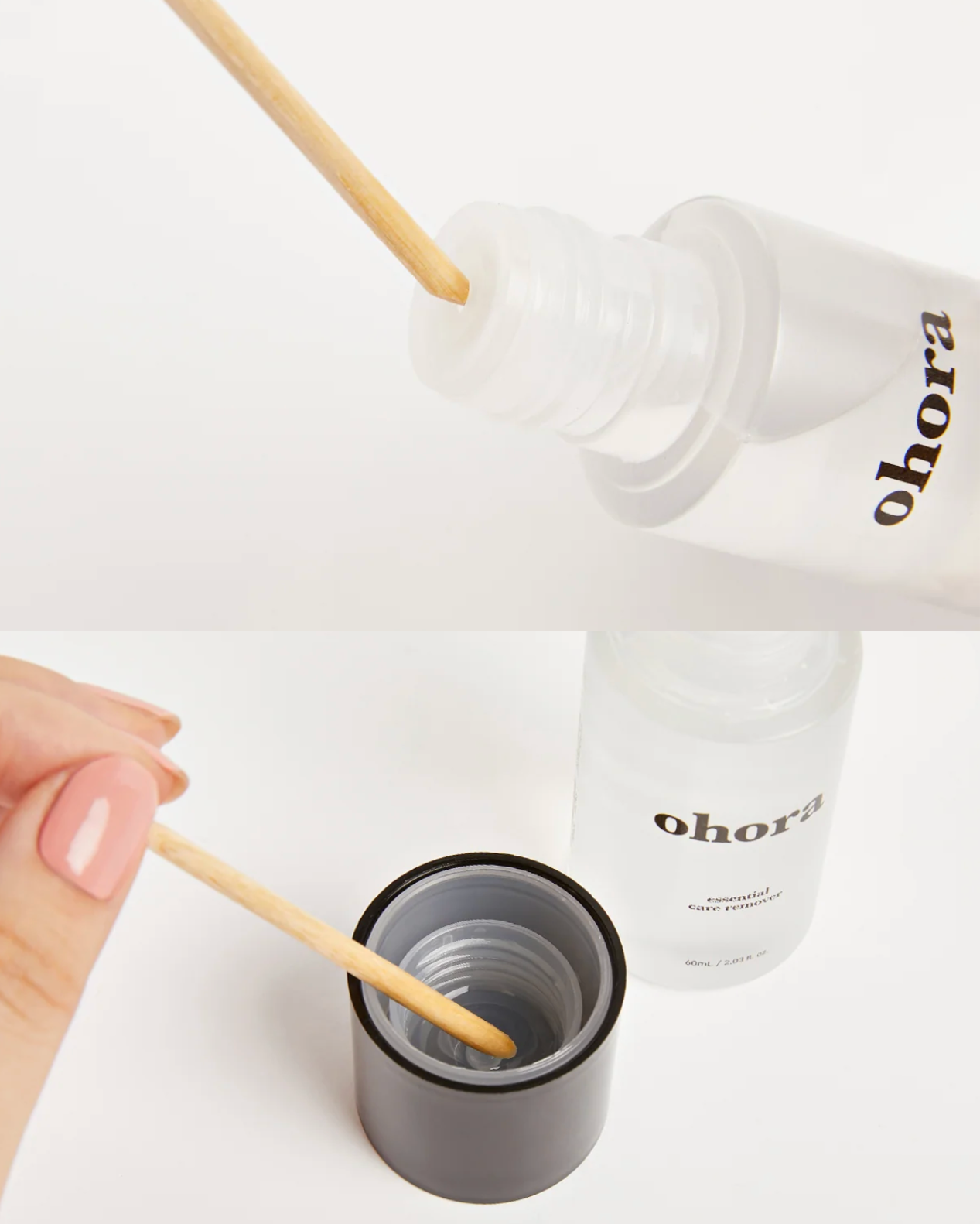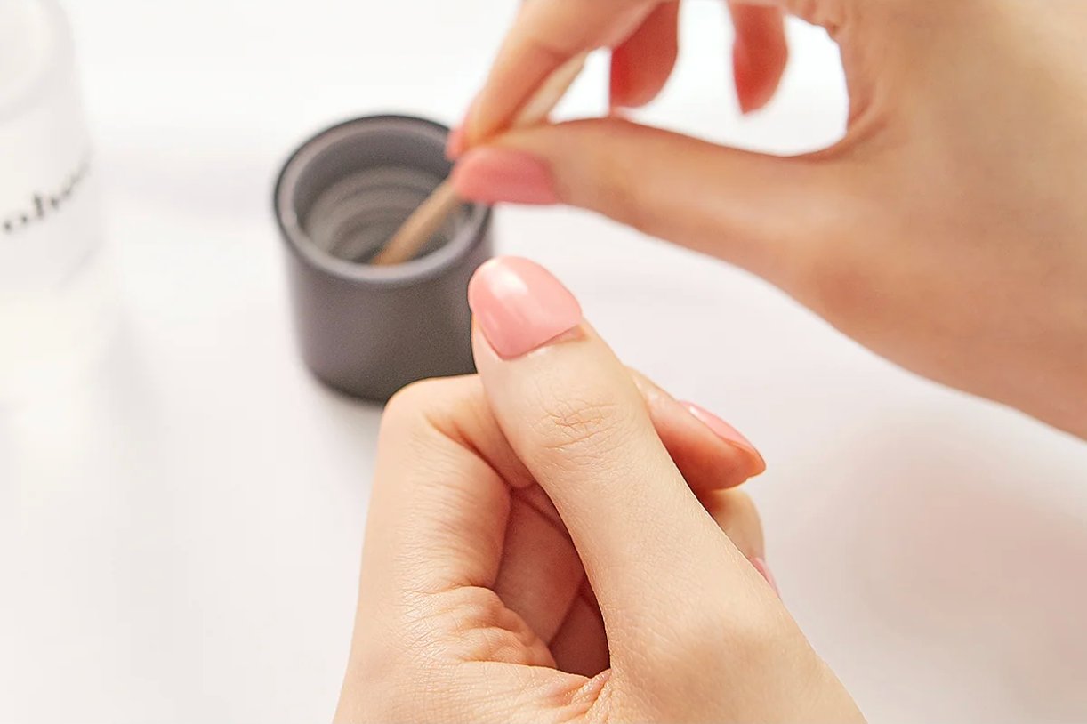 Dip enclosed wooden stick into nail polish remover or nail oil.
